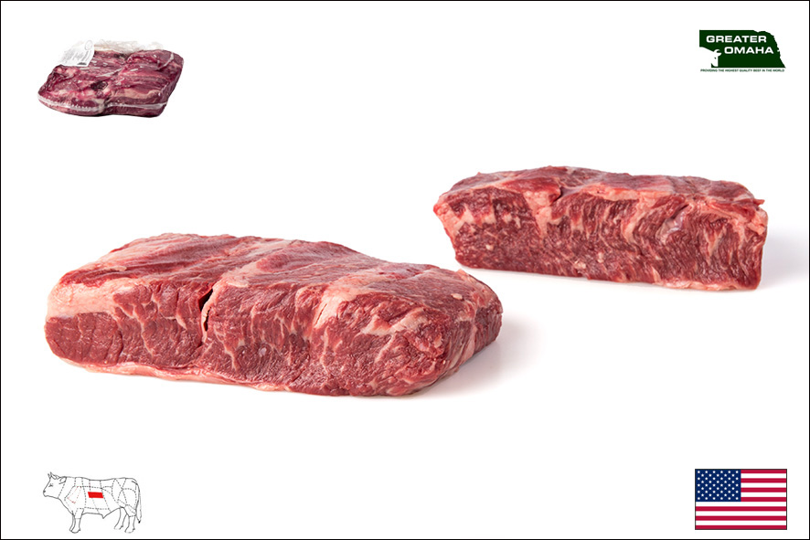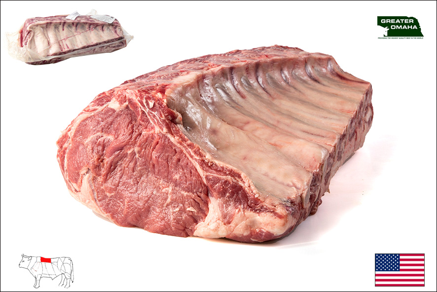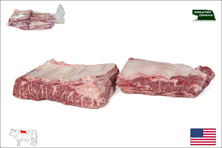 Die Rinderrassen Angus und Hereford werden gekreuzt und die Tiere grasen 18 Monate in den Weiten Nebraskas. Nach dieser Zeit erfolgt die sogenannte Endmast ,in der die Tiere mindestens 4 Monate Getreide und Mais gefüttert bekommen.Das führt zu intramuskulären Fettablagerungen und es entsteht eine wertvolle Fettabdeckung. Hochrippe mit 7 ca. 25 cm langen freistehenden Rippen. Ideal zum Grillen.