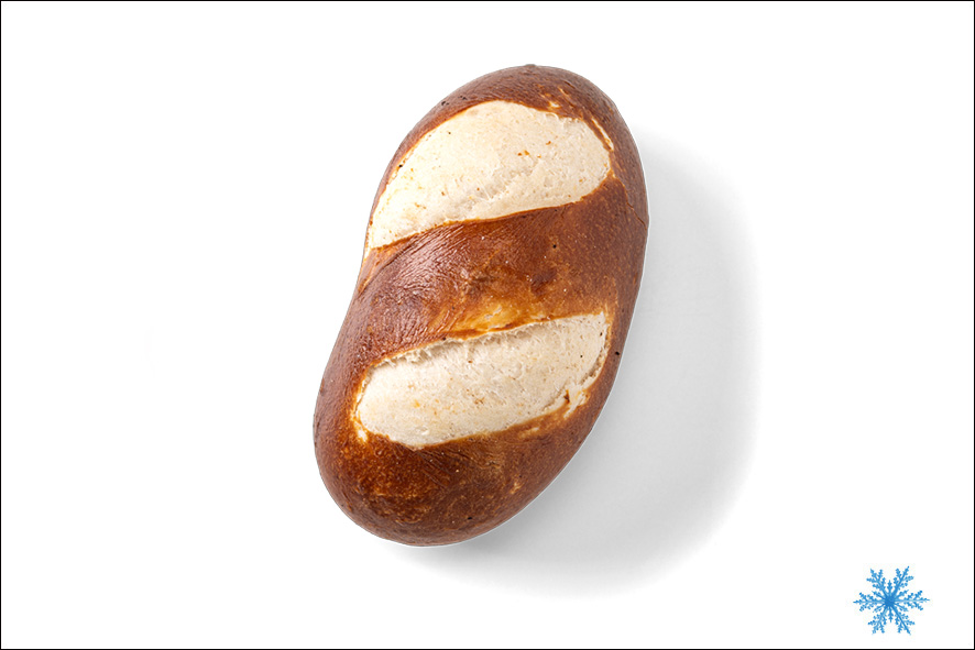 Vorgebacktes Laugenbrot. Im vorgeheizten Heißluftherd mit geschlossenem Zug, 6 Minuten bei 210° C goldbraun backen.