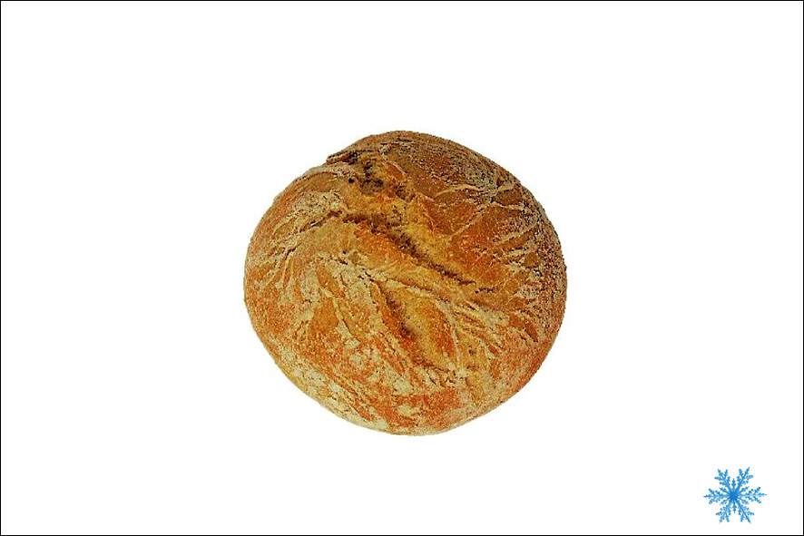 Mit Weizenmehl, Roggenmehl, nat. Sauerteig. Im vorgeheizten Heißluftherd mit geschlossenem Zug, 6 Minuten bei 210° C goldbraun backen.