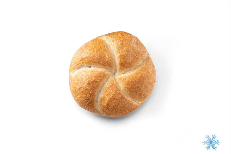 Semmel mit 19 g Gewicht, 90 Stück im Karton, schon vorgebacken. Auftauen lassen (ca. 30 min) und im Ofen bei 200° C für ca 9/10 Minuten fertig backen.