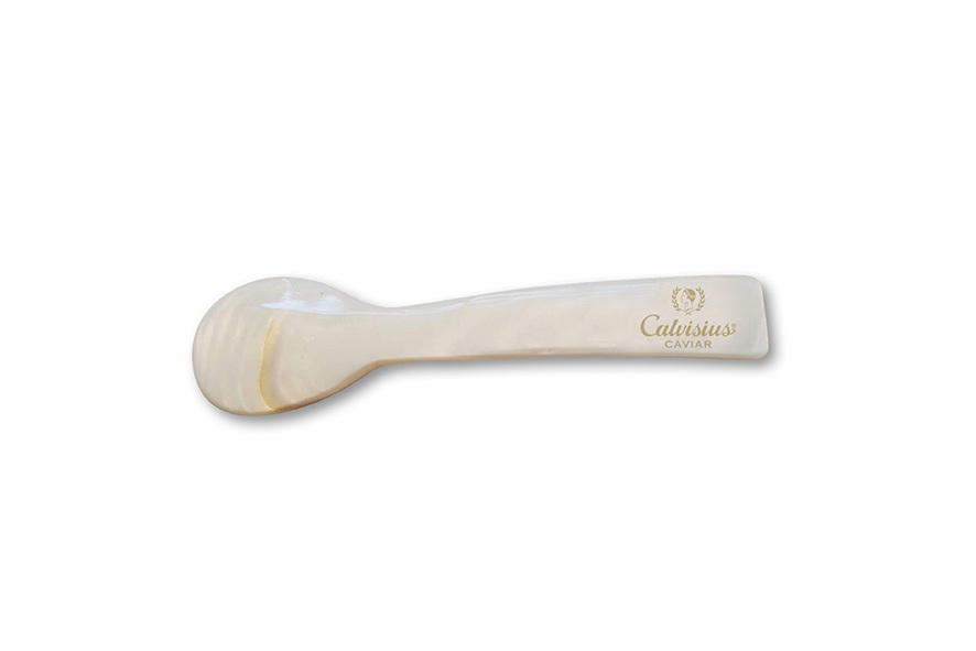 Perlmuttlöffel speziell für den Verzehr von Kaviar. Durch den hohen Eiweißanteil im Kaviar oxidieren Metalle und besonders Silberlöffel. Dies hinterläßt einen unerwünschten metallischen Geschmack. Deshalb verwendet man für den Verzehr von Kaviar gern Perlmuttlöffel.