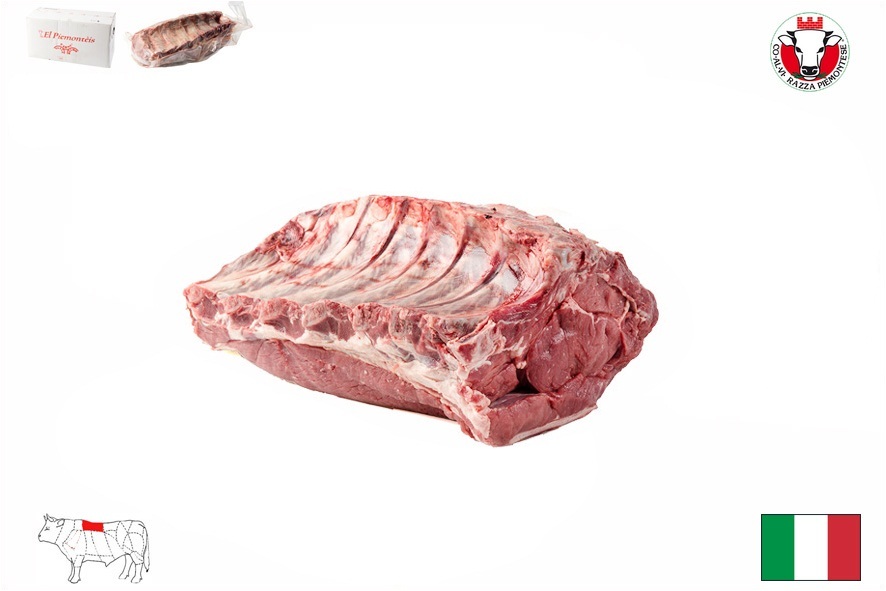 Hochrippe mit Knochen von Rind der piemontesischen Rinderrasse Fassona garantiert ein mageres und zugleich zartes Rindfleisch.