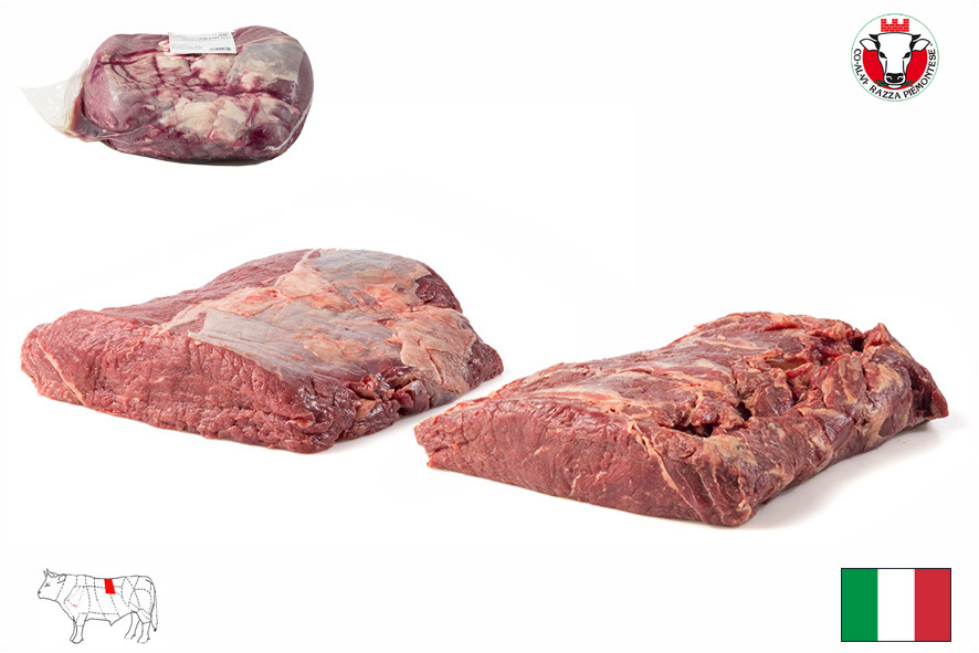 Brustspitz ohne Knochen von piemontesischem Rind der Rasse FASSONA. Diese Rasse ist bekannt dafür ein sehr mageres, zartes und wohlschmeckendes Fleisch zu haben. Dieses Teil kann als BRISKET bei niedriger Temperatur schonend gebraten werden, oder auch als gekochtes Rindfleisch verwendet werden.