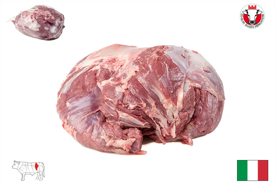Mageres Keulenteil von Rindfleisch piemontesischer Rasse. Dieses Rindfleisch ist bekannt für seinen ausgezeichneten Geschmack und seinen sehr niederen Fettanteil. In praktischen Mono-Portions-Beuteln verpackt.