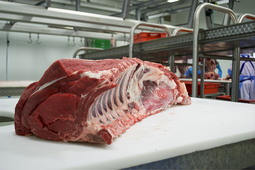 Das Roastbeef wird in drei Teile geschnitten und in Vakuum verpackt. Das Fleisch ist sehr mager und sehr zart, da es sehr wenig Bindegewebe hat. Es wird 3-4 Tage am Knochen gereift und dann verpackt.