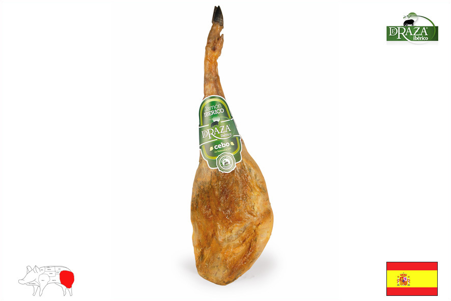 Das Iberische Schwein, auch Schwarzklauenschwein (Pata Negra) genannt, wird in den letzten Monaten mit Eicheln gemästet. 75 % Rassereinheit (Mutter 100% Iberico, Vater 50-75% Iberico). Das Fett hat eine leichte gelbe Farbe. Typisch ist, dass er bei ca. 20 ° C anfängt zu schwitzen. Der Rohschinken hat eine Reifezeit von min. 36 Monate. Dieser wird handgeschnitten und ist in praktischen Beuteln zu 100 Gr. abgepackt.