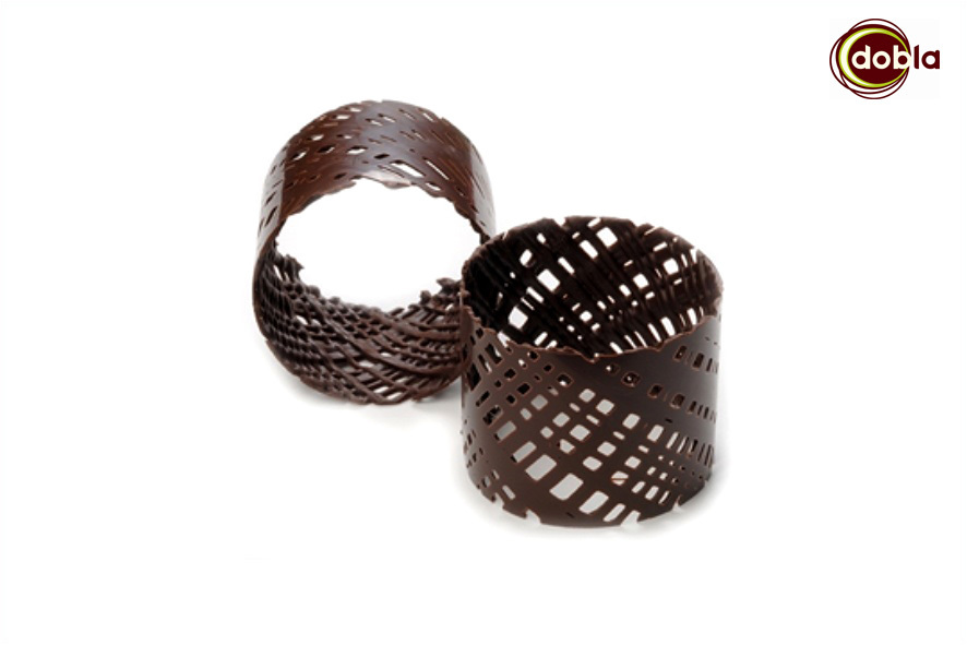 Schwarze Schokolade in Ringform. Jedes ist einzeln von einer Folie umgeben und dann in Styropor verpackt. Sie haben einen Durchmesser von 5,5 cm und haben eine Höhe von 4,5 cm. Ideal zum Füllen.