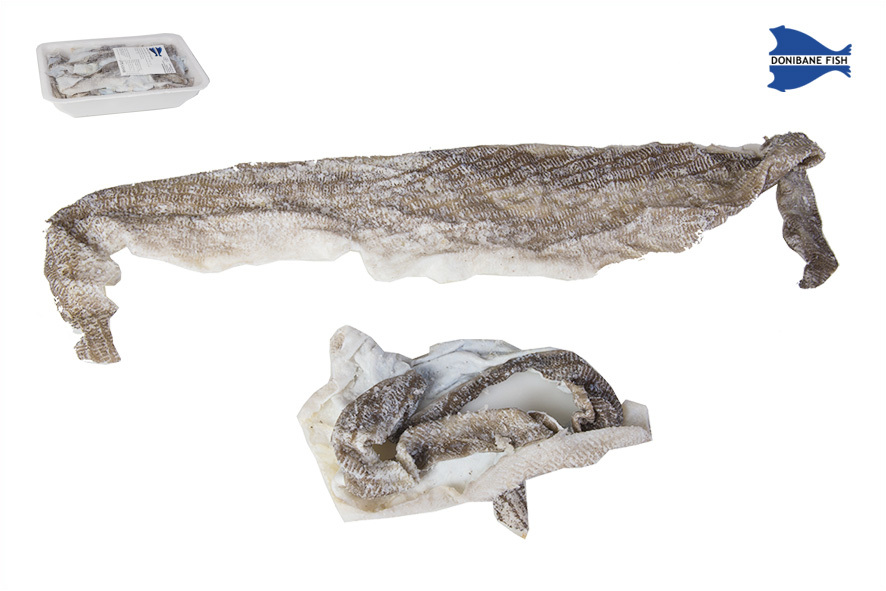 Der lateinische Name ist Gadus moruha. Er wird in Island gefischt, ausgesucht und geschnitten in Spanien, nach einer alten Tradition. Es handelt sich um die gesalzenen Kutteln. Zert. MSC