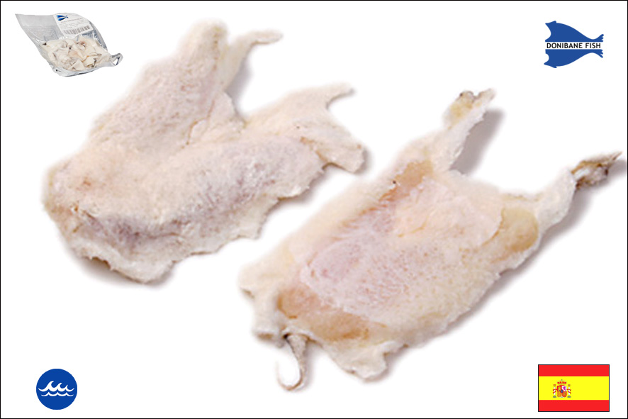 Der lateinische Name ist Gadus morhua. Er wird in Island gefischt, ausgesucht und geschnitten in Spanien, nach einer alten Tradition. Es handelt sich um die Abschnitte, die anfallen, wenn das Filet zugeschnitten wird. Ideal für die Zubereitung von Stockfischgröstl oder Baccalaschaum. Um die Qualität und die Haltbarkeit zu gewährleisten, muß die Kühlkette von 0 bis +2° C, eingehalten werden. Zert. MSC