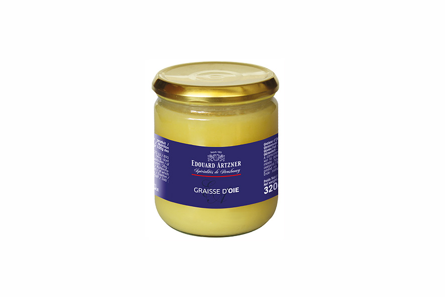 Gänsefett aus französischer Produktion in Dose abgefüllt. Dieses eignet sich in der Küche für die Zubereitung besonderer Rezepte.