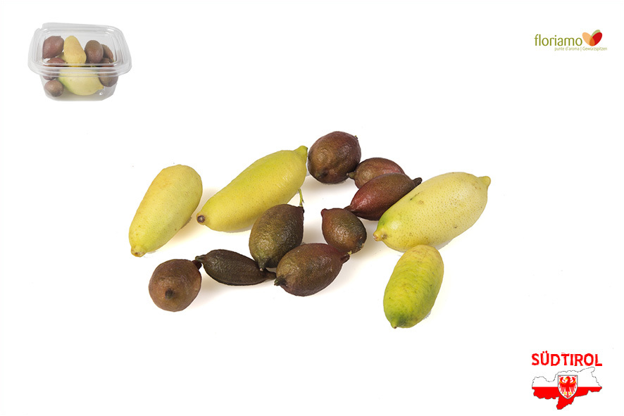 Fingerlimes stammen ursprünglich aus dem australischen Regenwald. Sie haben unter ihrer Schale eine kaviarartige Konsistenz, mit einem erfrischenden Geschmackserlebnis. Die Früchte gibt es in unterschiedlichen Farbschattierungen, diese reichen von rot über grün, orange und bis hin zu sämtlichen Mischformen. Passen hervorragend zu Salaten sowie ausgezeichnet zu allen Fischgerichten.