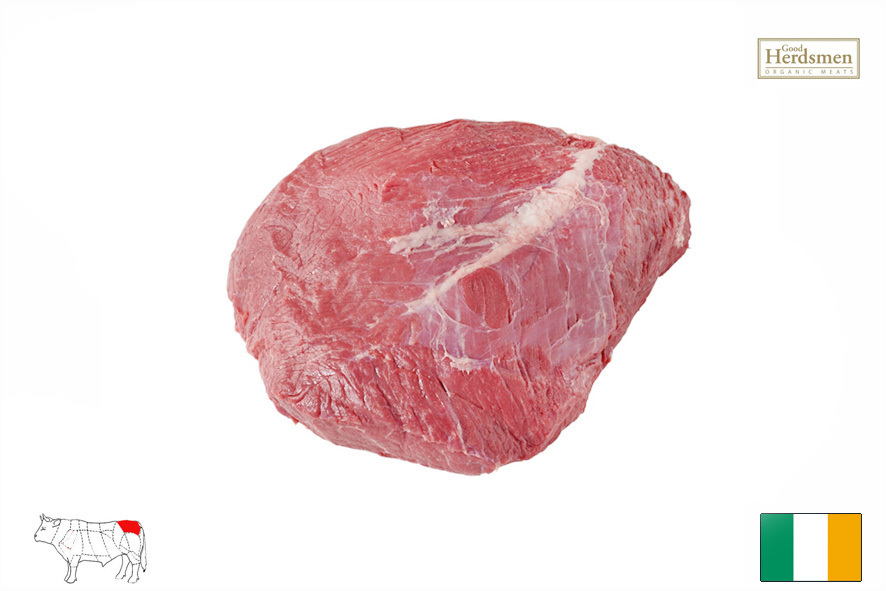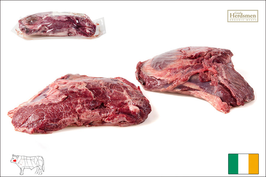 Rinderrassen Aberdeen Angus welche 30-36 Monate nach biologischer Haltung in Irland gezüchtet werden. Frei von Antibiotika oder Hormonen, hat aber einen hohen Anteil an Omega 3 Fettsäuren.Das falsche Filet, auch Schultermeisel oder Bugfilet genannt ist ein kompakter runder Muskel der Schulter welcher sich bestens fürs Gulasch oder fürs gekochte Rindfleisch eignet.
