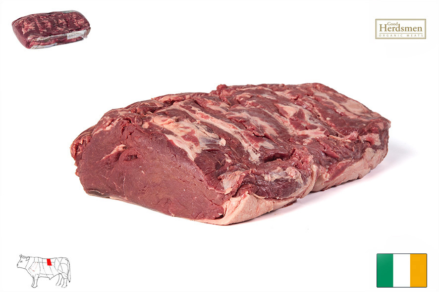 Reine Rinderrassen Aberdeen Angus welche 30-36 Monate nach biologischer Haltung in Irland gezüchtet werden. Das Fleisch ist frei von Antibiotika oder Hormonen, hat aber einen hohen Anteil an Omega 3 Fettsäuren. Roastbeef ohne Knochen welches auf der Höhe der 5. Rippe abgeschnitten wurde. Geeignet zum Kurzbraten, Grillen oder auch fürs Roastbeef englischer Art.