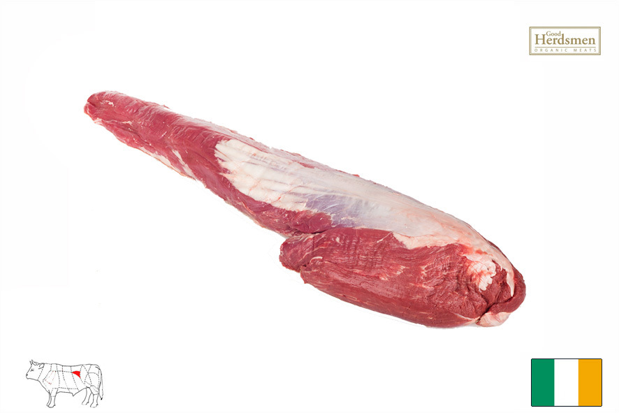 Rinderrassen Aberdeen Angus, Alter 30-36 Monate, biologische Haltung Irland. Frei von Antibiotika oder Hormonen, hat aber einen hohen Anteil an Omega 3 Fettsäuren. Der zentrale Teil eignet sich zum Schneiden von Medallions, der Filetkopf für Chateaubriand und der Filetschwanz ist ideal für die Zubereitung von Stroganoff oder für feines Geschnetzeltes.