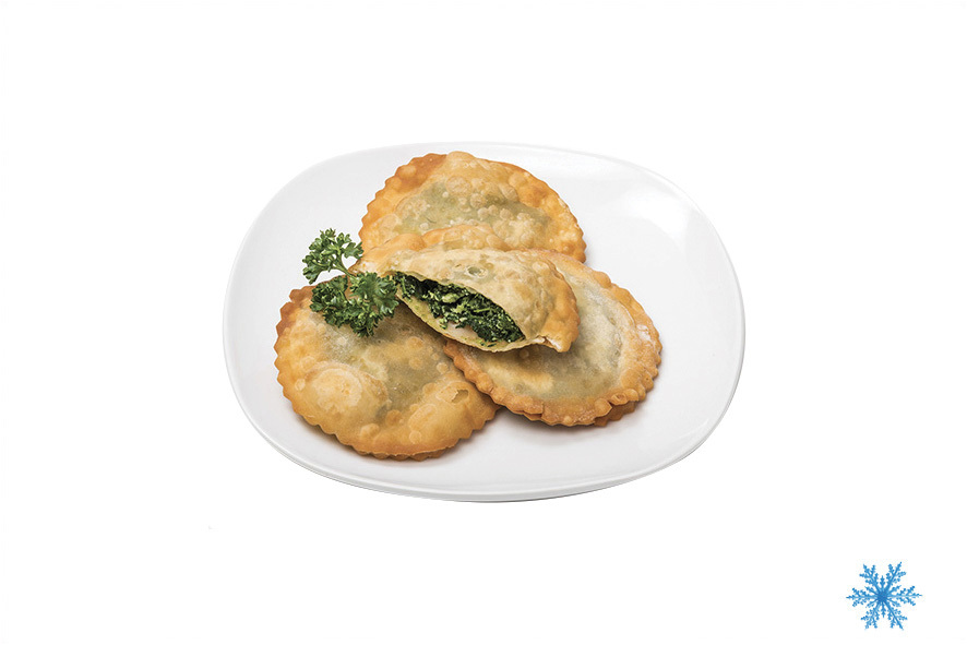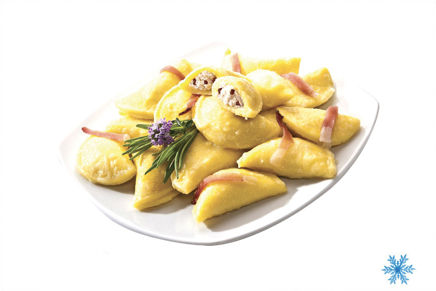 Typische Teigtaschen (Halbmond) aus Kartoffelteig, gefüllt mit Spinat/Ricotta. Einfach noch gefroren in kochendes Wasser geben.