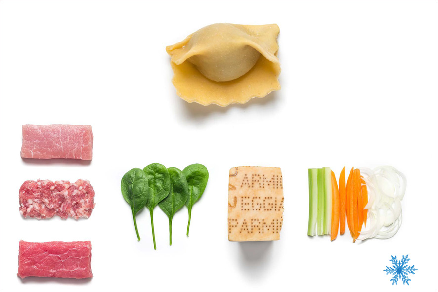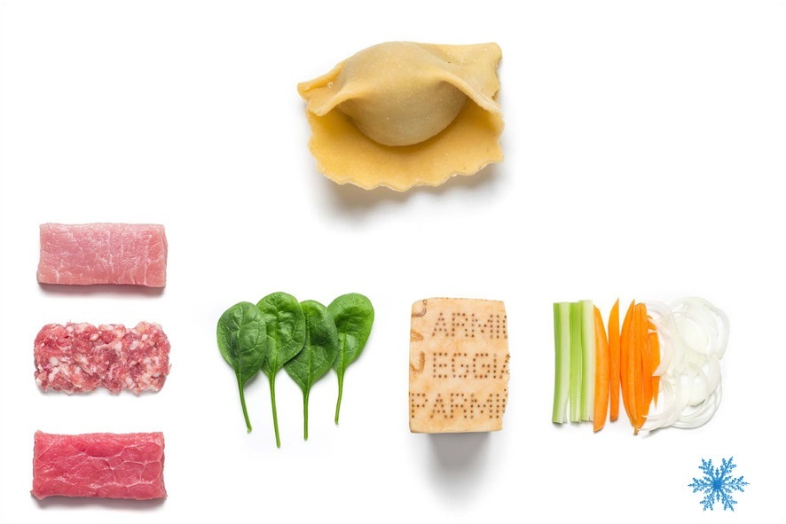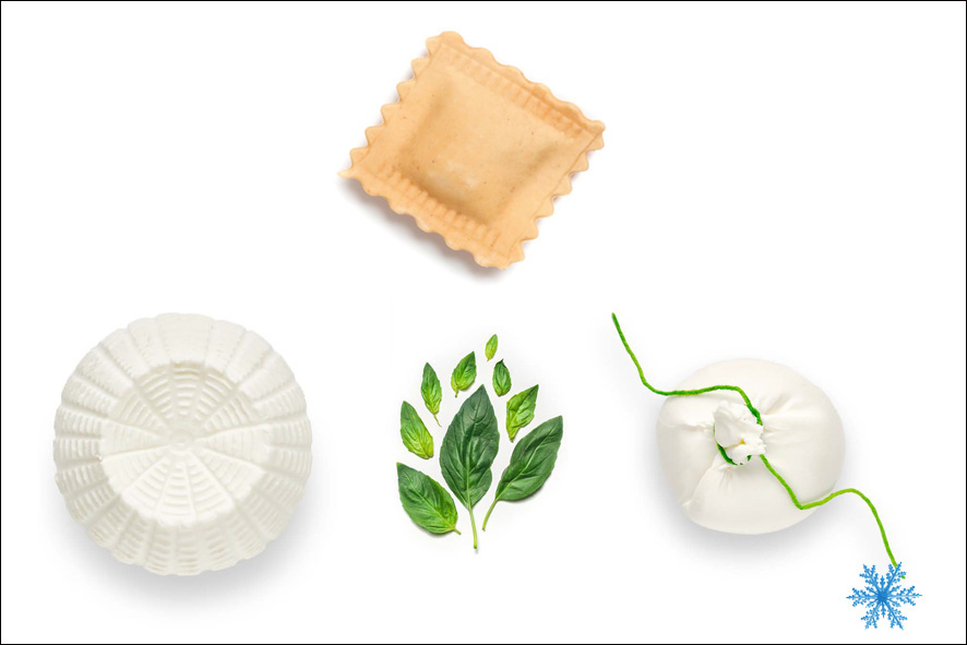 Tiefgefrorene Pasta nach italienischer Tradition, kreiert und hergestellt in einem innovativen Labor im Piemont mit ausgewählten Zutaten von höchster Qualität. Gewicht etwa 11 g, mit 30 % Kabeljau in der Füllung. Serviervorschläge: Kichererbsencreme. Tropea Zwiebel karamellisiert. Flocken von Kabeljau, Öl und Petersilie.