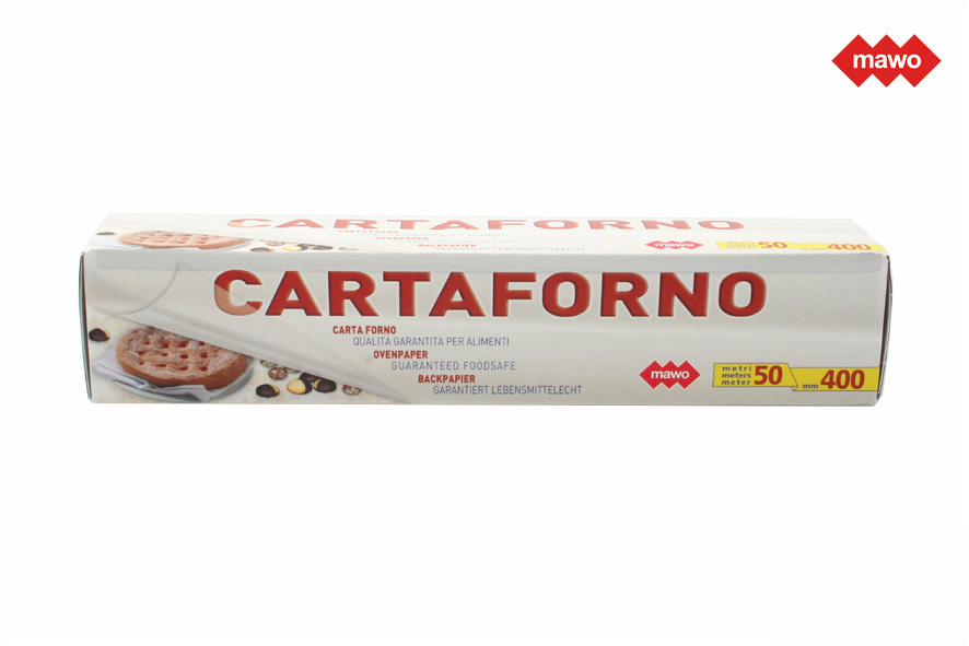Sehr hitzeresistentes Backpapier. Rolle mit 40 cm Breite und 50 m Länge.