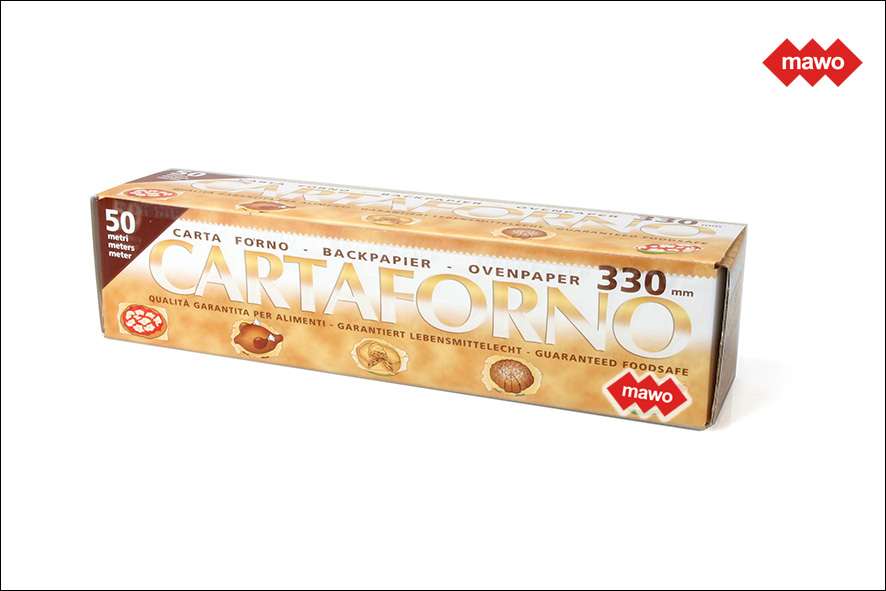 Sehr hitzeresistentes Backpapier. Rolle mit 33 cm Breite und 50 m Länge.