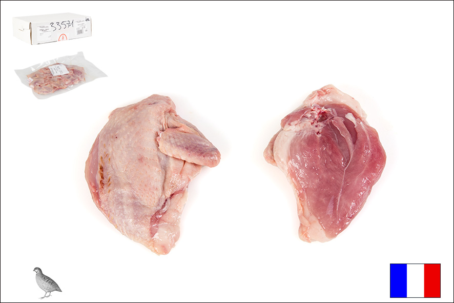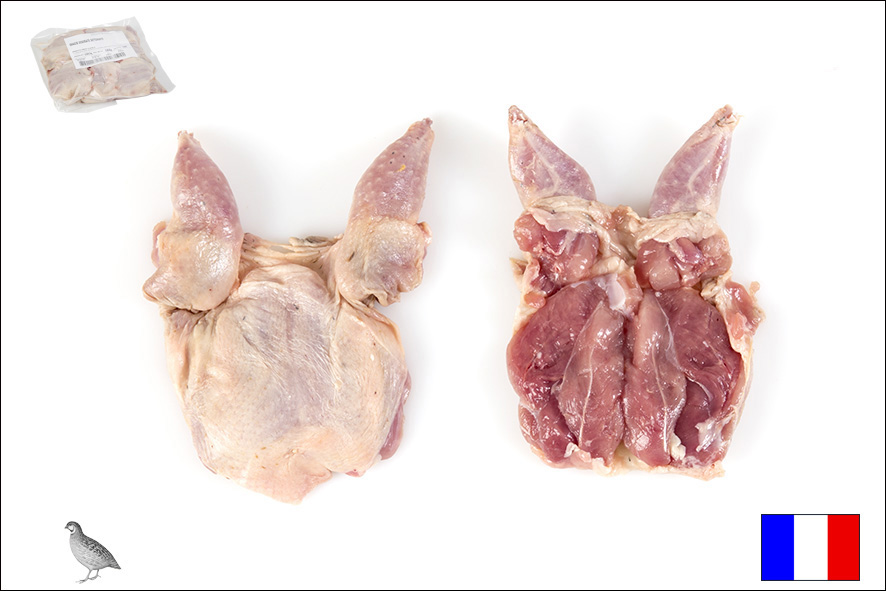 Hochwertige Wachtelbrüste aus streng kontrollierten Zuchtbetrieben. Diese Brüste sind besonders saftig, mit anhängendem Flügel und Haut, und sofort einsatzbereit. Sie verleihen Gerichten einen subtilen Hauch von Wildaroma und zeigen keinerlei Spuren von Futtergeschmack.