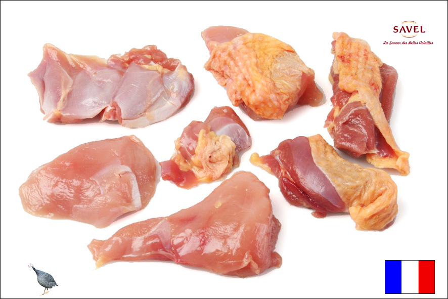 Stubenküken aus französischer Haltung. Diese sind komplett entbeint und folglich ohne Knochen. Also schon küchenfertig zugeschnitten.