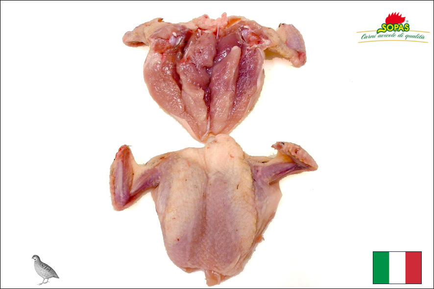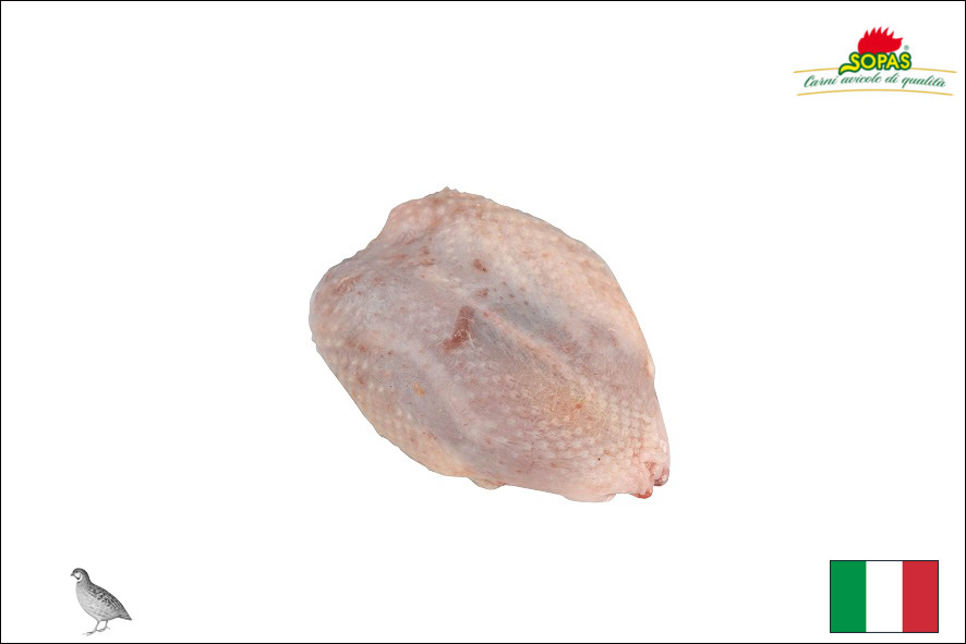 Wachtelbrüstchen von in Italien gezüchteten und geschlachteten Tieren. Die Brüstchen sind mit Haut und Flügel. Jede Packung beinhaltet 30 einzelne Brüstchen.