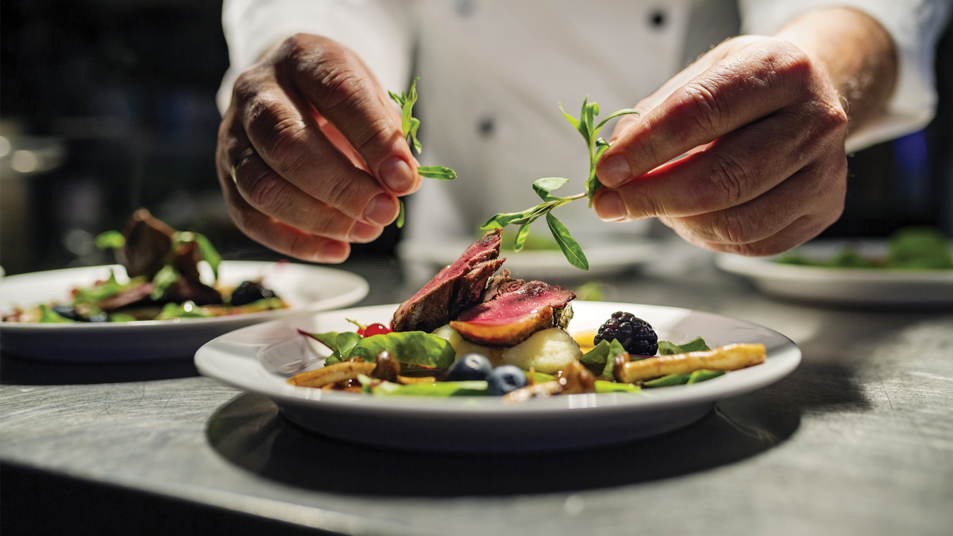 Die Wiesenkräuter werden fünf bis acht Wochen nach der Aussaat geerntet. Ihre Geschmacksnoten reichen von leicht säuerlich bis zu herb-bitteren Tönen. Zusammensetzung (Saisonabhängig): Senfblätter, Pimpinelle, Schafgarbe, Bronzefenchel, Löwenzahn, Sauerampfer, Mitsuba, Indianernessel, Kale rot und Kale grün. Zum Salat passen Filets und Medaillons vom Wild.