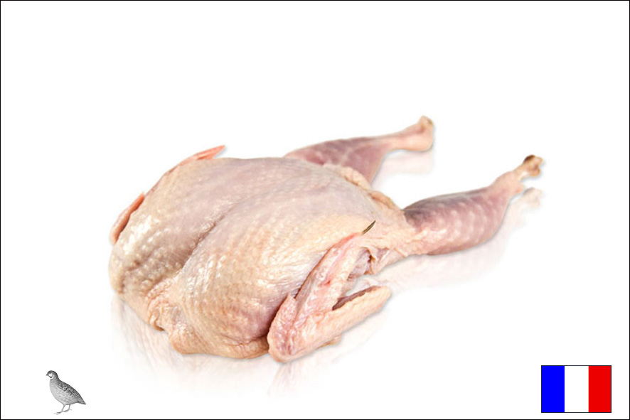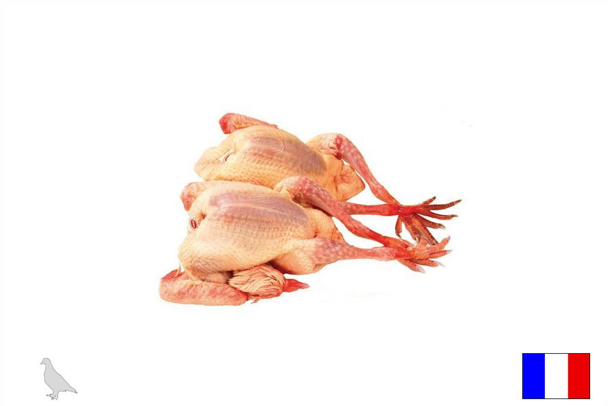 Taube (lat. Columbidae), handwerklich gerupft, mit Kopf und Füße, ohne Magen und Gedärme (éffilé). Das Fleisch von Tauben ist zart und besitzt ein wohlschmeckendes, kräftiges Aroma. Das Taubenfleisch ist rötlich gefärbt. Diese Taubenrasse wird in Frankreich mit 80% Mais und Soya gefüttert. Tauben eignen sich zum Braten aber auch für die Zubereitung von Frikassee.