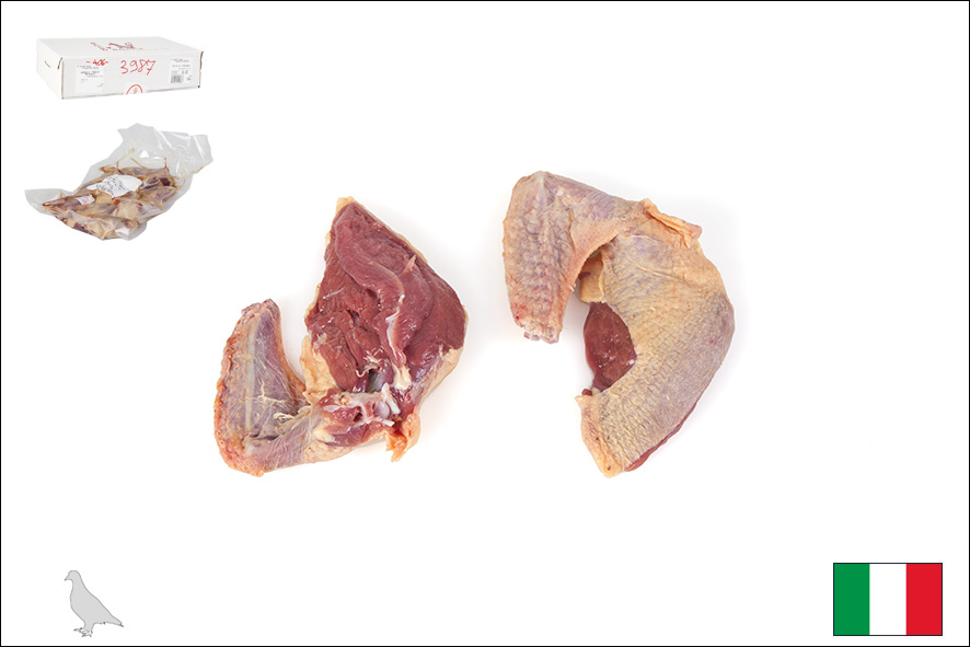 Das Taubenfleisch ist ausgesprochen zart und bietet einen intensiven und köstlichen Geschmack. Normalerweise hat Taubenfleisch eine rosa Farbe und einen geringen Fettgehalt. Die Brust ist mit Flügel und Haut versehen.