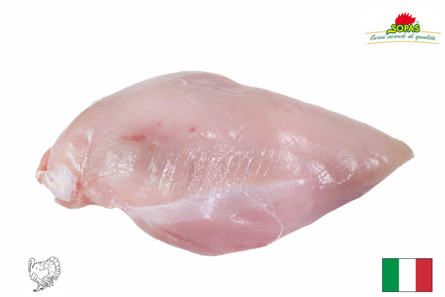 Truthahnbrust vom männlichem Truthahn aus italienischer Zucht. Verpackung mit halber Brust.