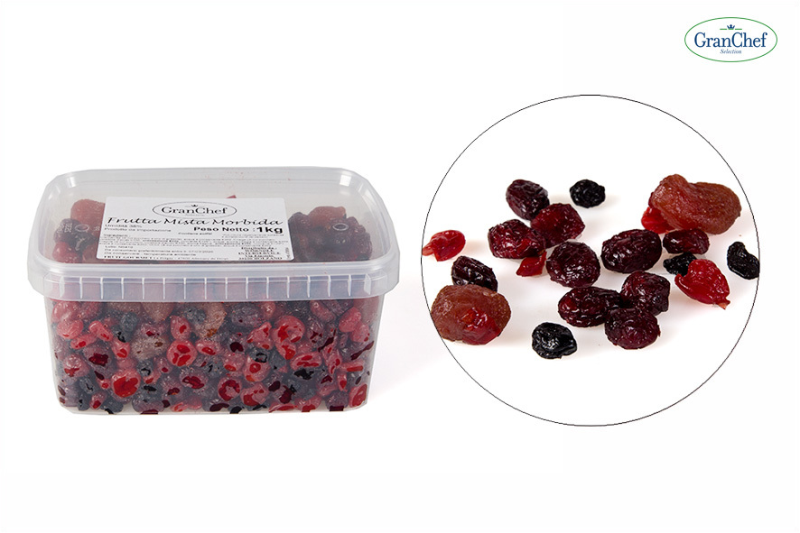 Weiche Trockenfrüchte von einem der besten Herstellern in Frankreich. Ein Mix aus Kirschen, Erdbeeren und Cranberries. Ideal auf dem Frühstücksbuffet, als Zutate für Antipasti und Desserts oder auch als Beilage zu Käse, Wurstwaren, Fleisch. Gran Chef Selection steht für beste Qualität, durch der strengen Auswahl der Rohstoffen und Produzenten.