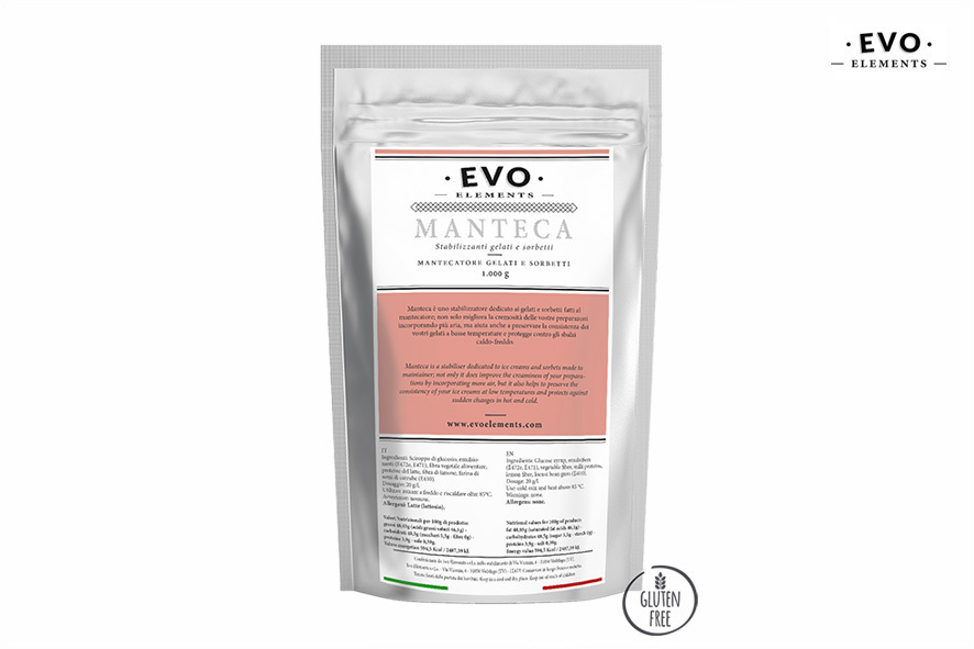 Manteca ist ein Stabilisator der es ermöglicht mehr Luft in Eis und Sorbets einzuarbeiten. Er verbessert nicht nur die Cremigkeit Ihrer Präparate sondern ermöglicht die Konsistenz der Eiscreme bei niedrigen Temperaturen zu bewahren und schützt vor Temperaturschwankungen. Mischverhältniss: 20 g/lt