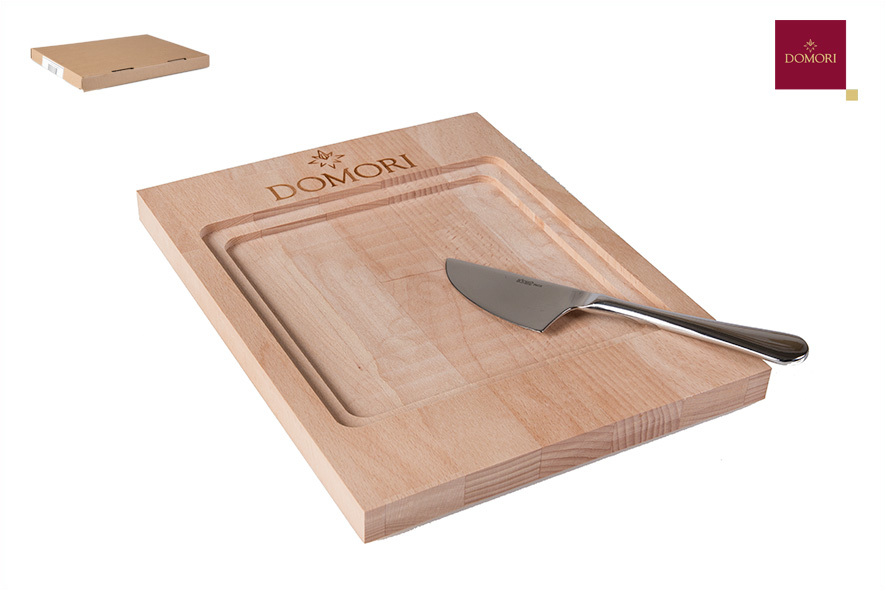 Holzschneidebrett mit Messer, ideal für die Verkostung der 500g Schokloadetafeln. Ausgezeichnet mit Süssweine oder Liköre.
