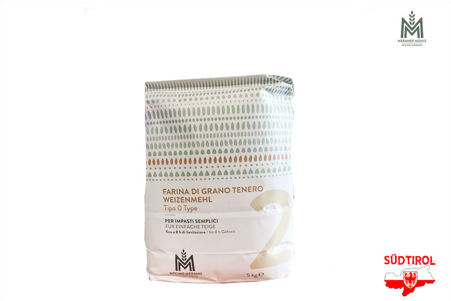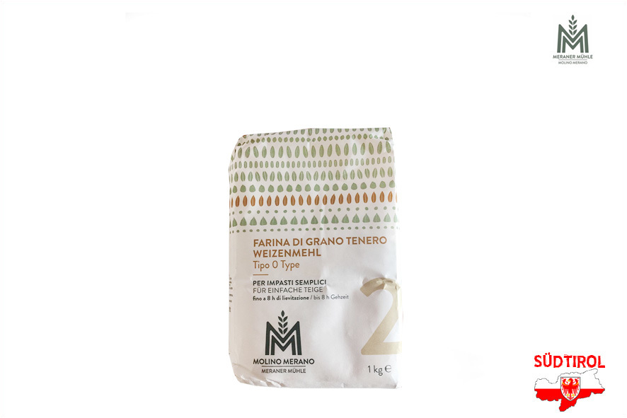 Weichweizenmehl Typ "2", im Mahlvorgang werden die Keime nicht ausgeschlossen. Der Keim gibt dem Mehl ein angenehm duftendes Aroma, und sorgt für einen festen, glatten, flexiblen Teig. Rheologische Eigenschaften/Teigstabilität: W340 - Tolleranz -10/+30; P/L 0,60 - Tolleranz +/- 0,10.
