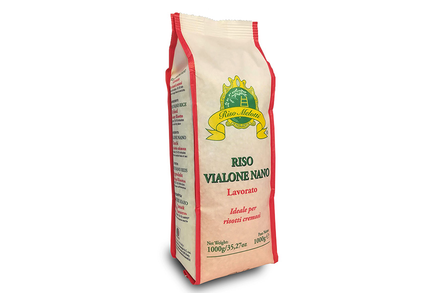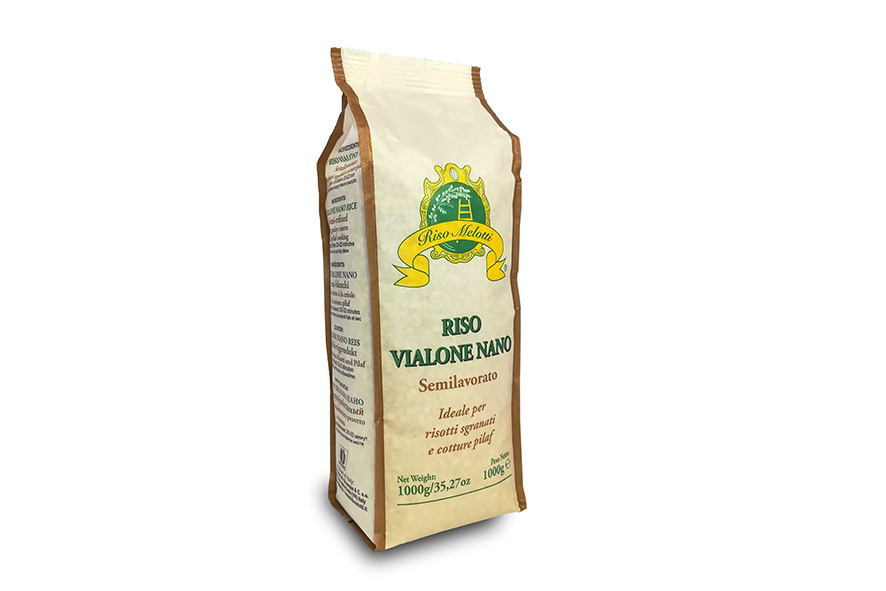 Verarbeitet und verpackt nach handwerklichen Verfahren. Vialone Nano ist eine typische Sorte aus dem Gebiet von Verona. Dank der handwerklichen Verarbeitung behalten die Körner ihre charakteristische Elfenbeinfarbe. Ideal für die Zubereitung von cremigen Risottos, da sie beim Kochen viel Stärke abgibt. Kochzeit: 16-18 Minuten.