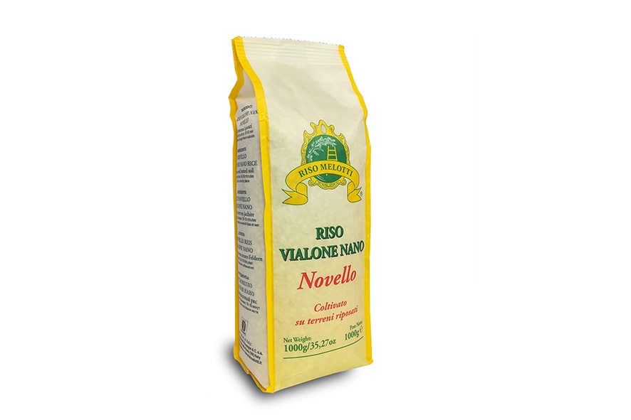 Der Reis Vialone Nano Novello wird von der Azienda Agricola Melotti Giuseppe angebaut und stammt von ausgeruhten Böden. Es handelt sich also um einen Reis von hervorragender Qualität und Geschmack, mit hohen Nährwertmerkmalen. Er wird mit handwerklichen Methoden verarbeitet und verpackt. Ideal für cremige Risottos, da er beim Kochen viel Stärke abgibt. Kochzeit: 16-18 Minuten