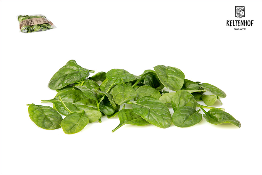Der junge Blattspinat ist ein saftig grüner und knackiger Traum. Keltenhof erntet ihn etwa acht Wochen nach der Aussaat im Freiland. Die jungen Blätter sind dann noch zart genug, um als köstlicher Salat angerichtet zu werden.