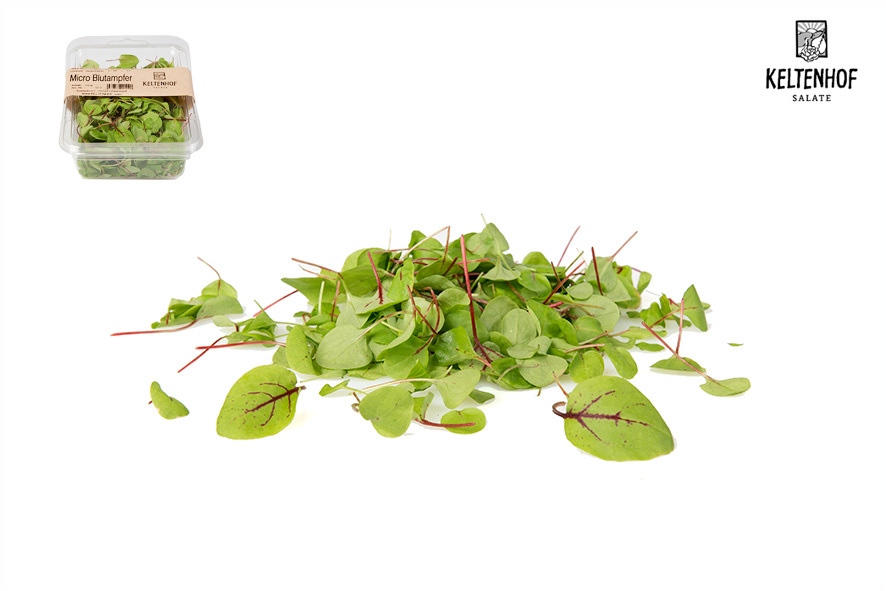 Micro Leaf Mix: roter und grüner Mizuna, Tatsoi sowie Kale, Sonnenblumentriebe, Amaranth und Micro Blutampfer (je nach Verfügbarkeit). Drei Wochen jung geerntete Blättchen nur 4 bis 5 cm hoch und mit noch feinerer Blattstruktur als beim Baby Leaf. Vielseitige Verwendung möglich, mit Vinaigrette als Mini Salatbouquet oder als kreatives Finishing Produkt für ein vollendetes Gericht.
