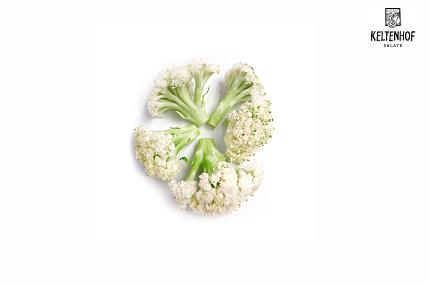 Der wilde Blumenkohl hat eine feine Konsistenz und einen zarten Geschmack. Es wird nicht wie klassisch die ganze Blüte in einem geerntet, sondern auch die einzelnen Triebe die nachschießen. Er ist nicht klassisch weiß, sondern leicht grau bis leicht gelb. Er muß nicht blanchiert werden, es reicht kurze Hitze (grillen, ansautieren, ganz kurz ankochen) bis hin zur rohen Verarbeitung.