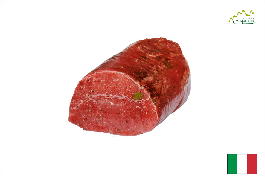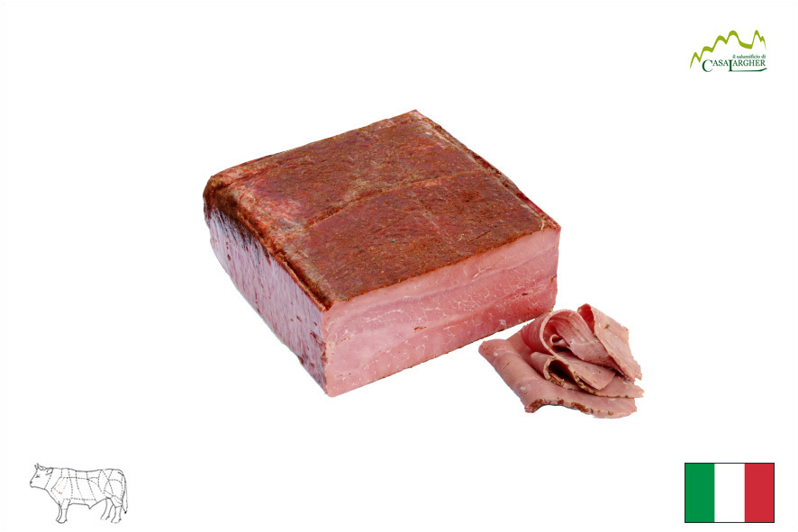 Das sogenannte "Salzfleisch" wird mariniert (mit Salz, Pfeffer, Wacholder- und Lorbeerbeeren), nach typischem Trentiner Rezeptur. Traditionell hergestellt, deshalb mit "Qualità Trentino" ausgezeichnet. Die "carne salada" kann man als Carpaccio, als Tartar oder gegrillt mit Salat oder marinierten Hülsenfrüchten servieren. Natürlich ist es ein ideales Antipasto oder ein tolles Produkt für jedes reichhaltige Büffet.