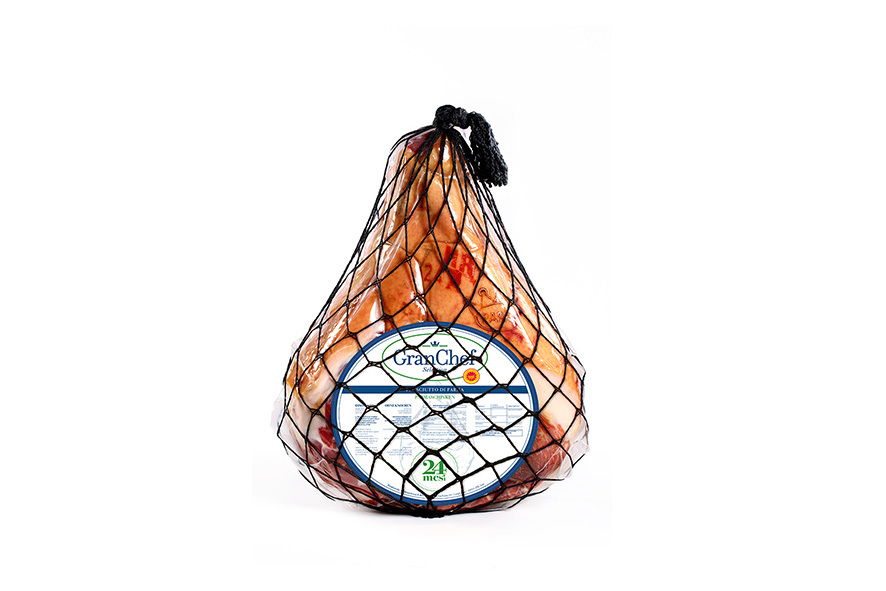 Handwerkliche Produktion in kleinem Familienbetrieb in den Apenninen. Rohschinken ohne Knochen gepresst von Schweinefleisch welches für die Verarbeitung von Schinken für Parma oder San Daniele verwendet wird. Lagerung mindestens 14 Monate.